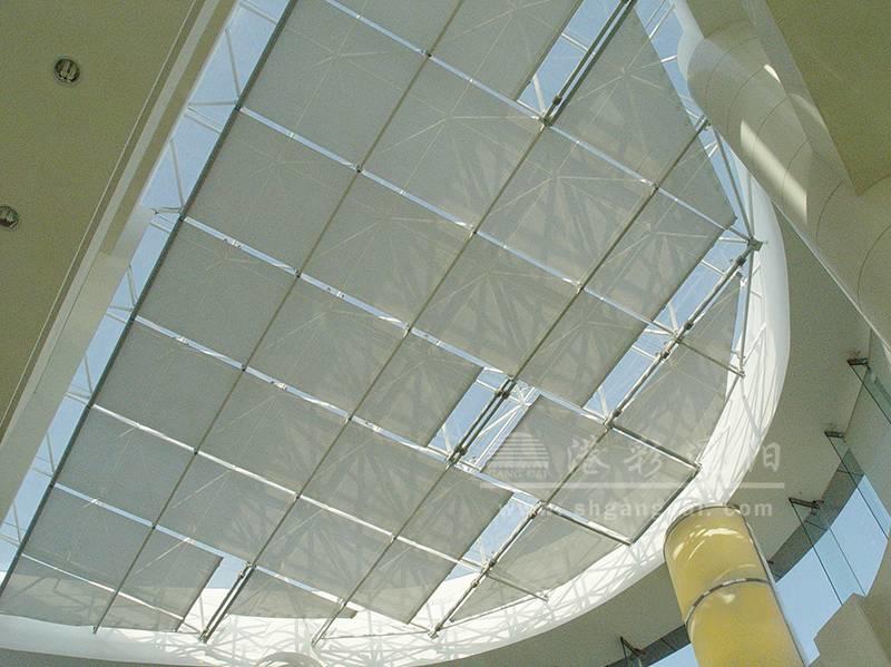 之所以形成这种结果,是因为内遮阳系统安装在玻璃房内,阳光直射至玻璃,玻璃传热近距离的空气,会在阳光房内产生温室效应,不可避免的使室内热量积聚所致。层高较低的阳光房热效应就很明显,商业广场的高空间下安装室内遮阳帘,加热的空气基本可以阻隔在顶部,热效应就会好多。