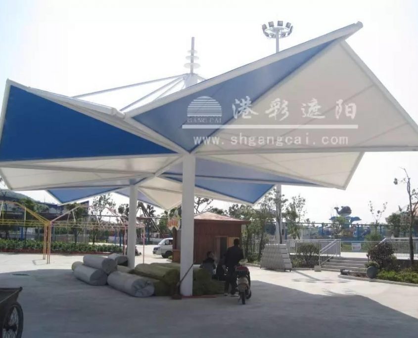 膜结构是20世纪中期发展起来的一种新型建筑结构形式,集建筑学、结构力学、精细化工与材料科学、计算机技术等为一体,具有很高技术含量,有多种高强薄膜材料(PVC或Teflon)及加强构件(钢架、钢柱或钢索)通过一定方式使其内部产生一定的预张应力以形成某种空间形状,作为覆盖结构,并能承受一定的外荷载作用的一种空间结构形式。