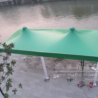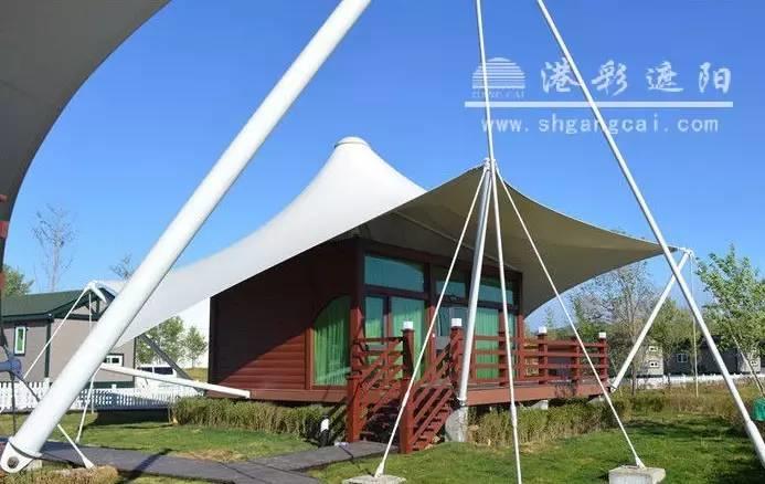 膜帐篷顶,既遮阳又防雨,造型独特,绝对是一道靓丽风景!广告性也很强!