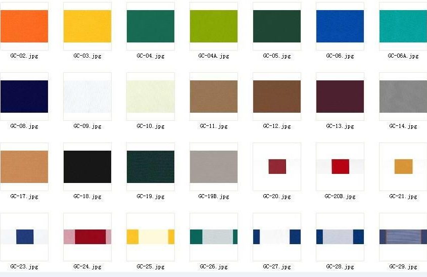 举例代表A:国产捷瑞丝面料 国内常用的遮阳面料,材质涤纶,克重280g/m2,色牢度ISO-B02-4/5级,静水压200ML。遮阳为主、防雨为辅。在户外,使用半年左右后开始慢慢褪色,价格也便宜。一般用于要求不高或是临时用的遮阳篷、遮阳伞等。