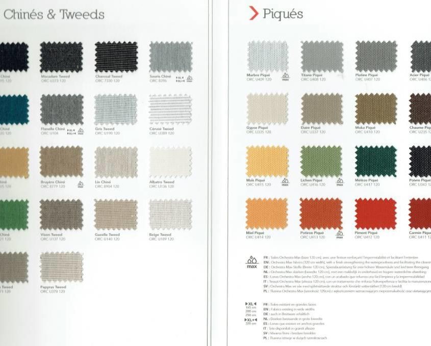 举例代表A: 法国Dickson遮阳面料 欧洲第一品牌遮阳面料,材质腈纶,原液染色工艺,克重300g/m2,耐候色牢度ISO105-B04-7/8级,静水压370ML,抗紫外线强,十年有限质保。性价比较高,港彩遮阳主推面料,并应用于众多著名案例。一般用于户外高档遮阳篷、遮阳天棚、遮阳伞类。