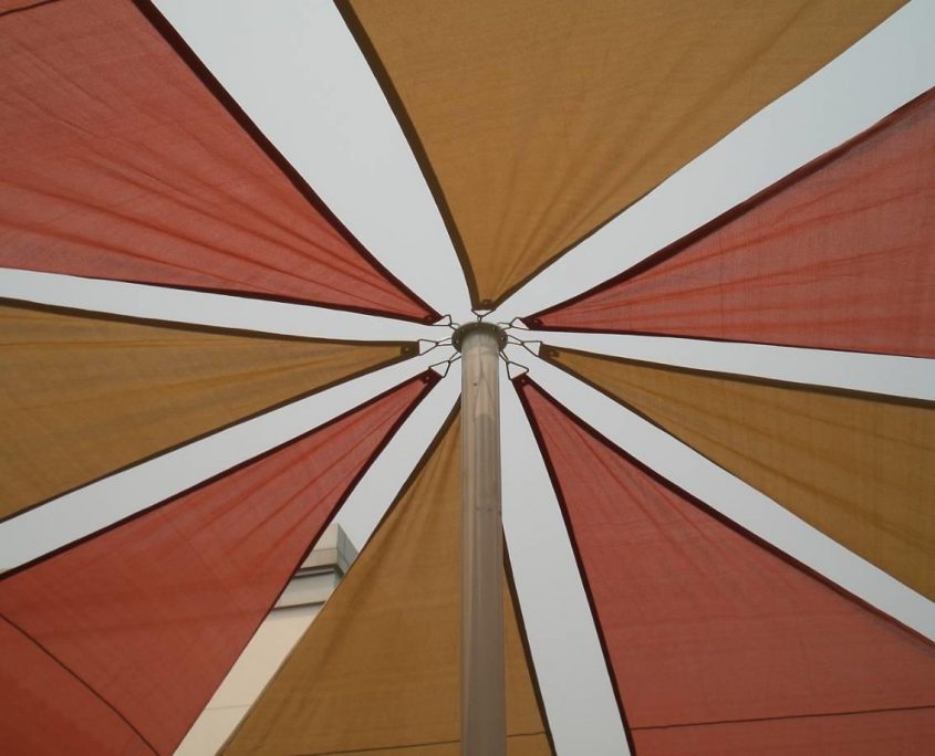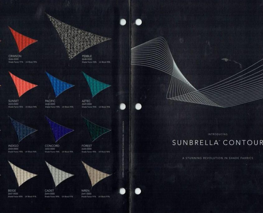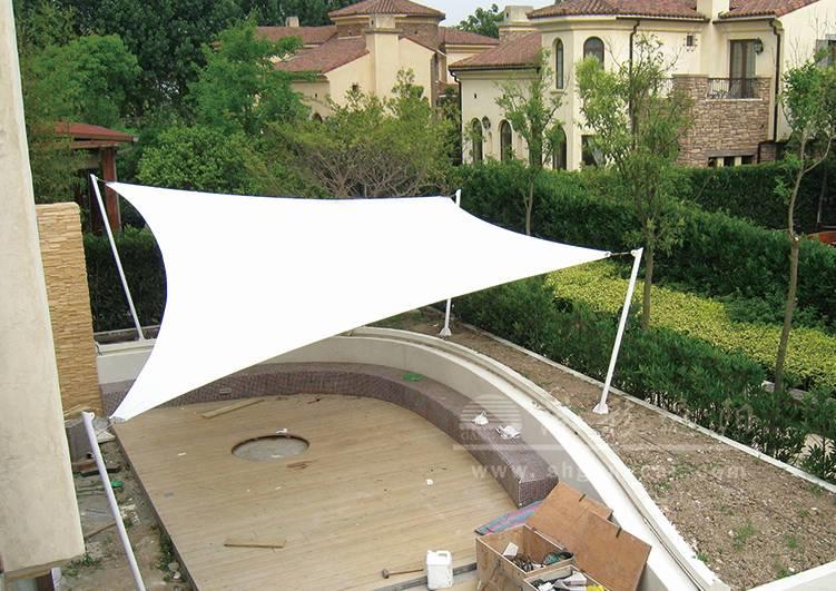 举例代表D : 美国带孔遮阳面料,仅遮阳不防雨。十年质保。一般用于造型遮阳帆等。