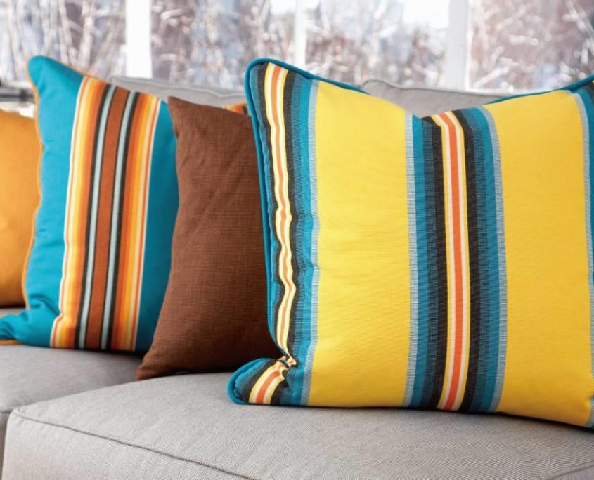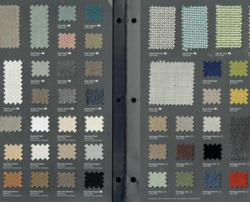 举例代表B:美国Sunbrella家居面料 世界第一品牌面料,材质腈纶。原液染色工艺,五年有限质保。家居面料主要用于遮阳伞、户外家具坐垫靠枕、户外布艺帘等,此面料不适用于遮阳篷类。