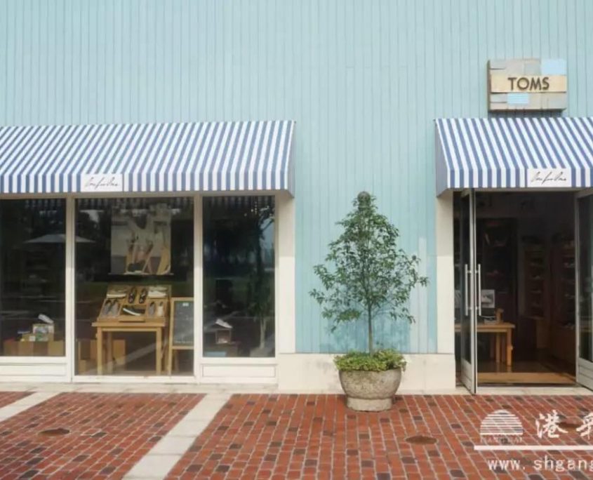TOMS店铺现在:篷布拉绳固定、篷布挺直、一改原貌