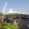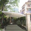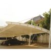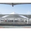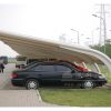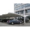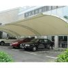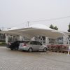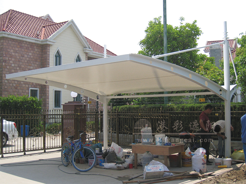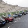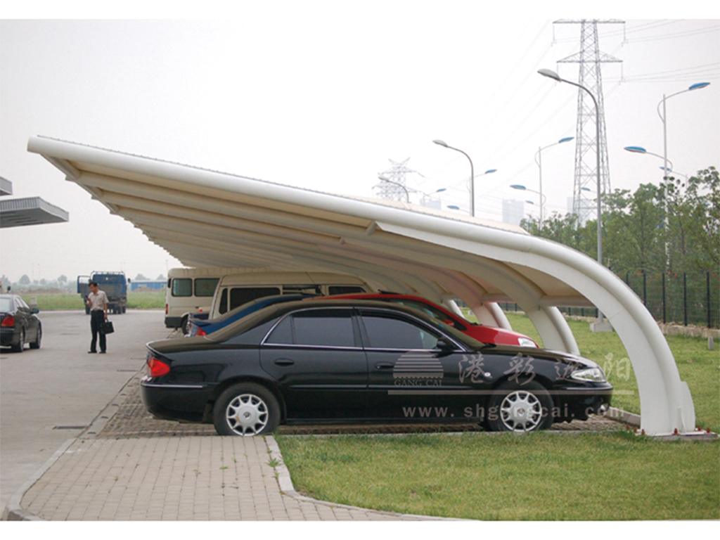 膜结构车棚顶面为软性材质,抗变形能力强,透光性适宜,自洁性能佳。可设计各形状车棚。