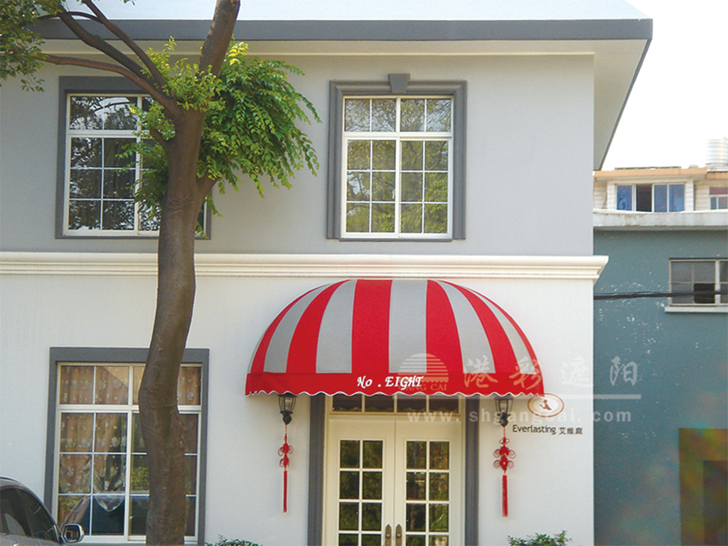 西瓜篷、横弧篷外形圆形,又另称西瓜篷,弧线流畅,大小分档自由,有效遮挡紫外线、雨水,商铺可以在篷上可印刷LOGO,提高商业氛围。