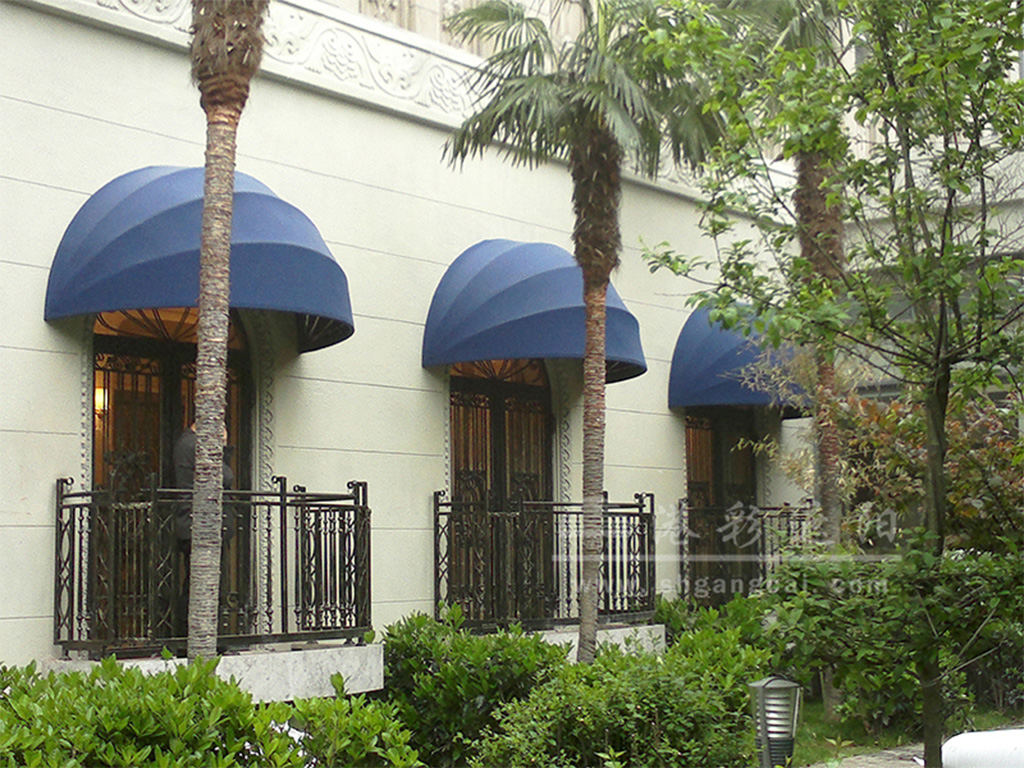 西瓜篷、横弧篷外形圆形,又另称西瓜篷,弧线流畅,大小分档自由,有效遮挡紫外线、雨水,商铺可以在篷上可印刷LOGO,提高商业氛围。