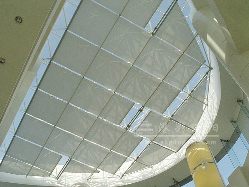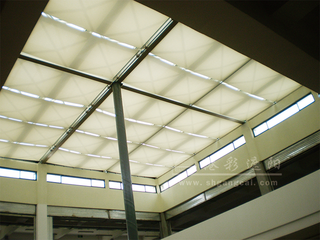 天棚帘主要是运用在天窗方面的电动遮阳系统,可用于商厦、商场、宾馆、写字楼、等大型采光顶也可用于高级住宅阳光室、花棚、玻璃阳台等处调节遮阳、保持室内适宜温度,避免强光辐射,改善采光效应。