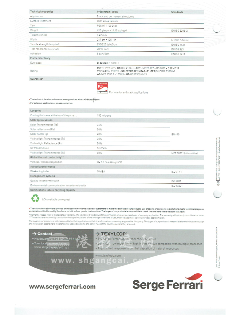 法国 FERRARI 有较好的自洁功能;法拉利T型自洁性极佳,适用于大型或是大跨度场地,受力较强。
